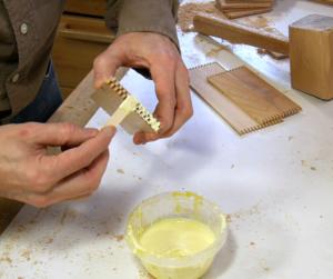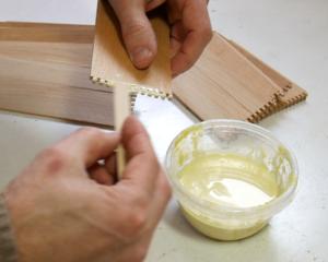 ends of the fingers. Using a splint of wood to smear glue along the fingers