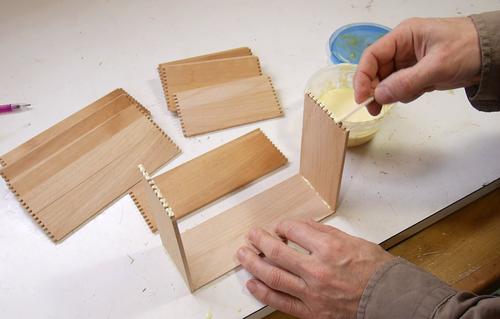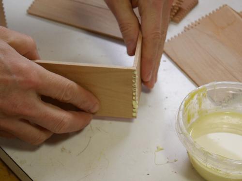 Gluing the joints together. I first tried applying the glue just by dipping