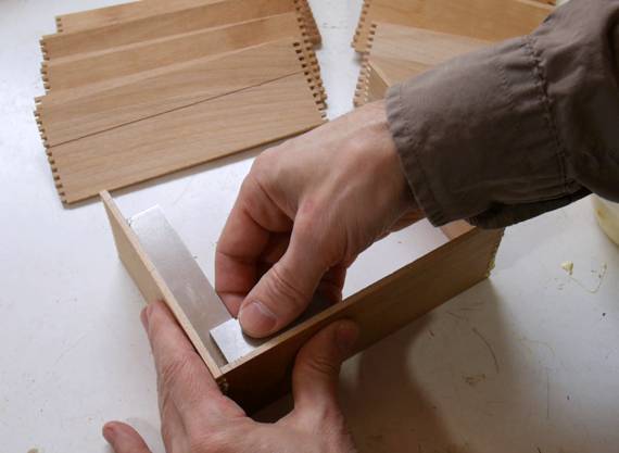 After that, I sanded all the box joints, bottom edges and corners to smooth and