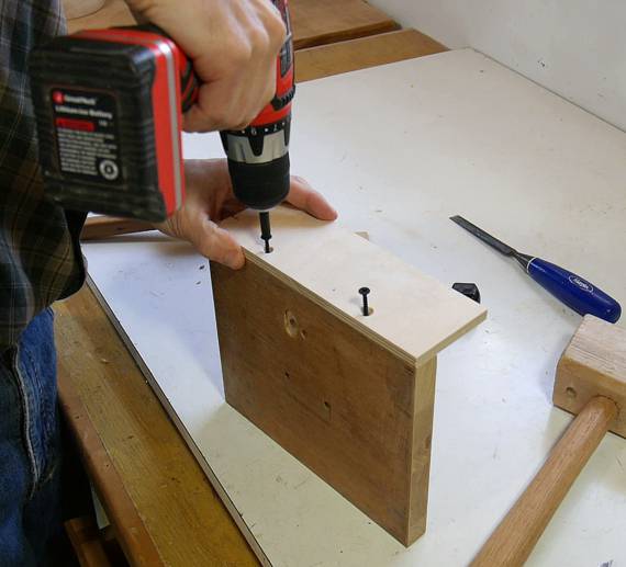 Here I'm using another piece of wood to make sure my workpieces (four thin ones) are flush with the end.