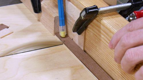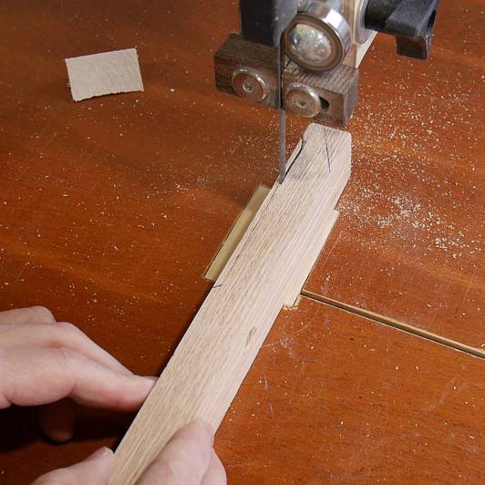 Here I'm cutting the workpieces, using a pencil to hold down the stock as I'm cutting it.