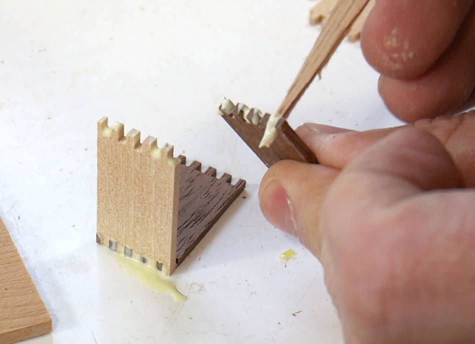 I used a pointy wood scrap to put glue between all the fingers.