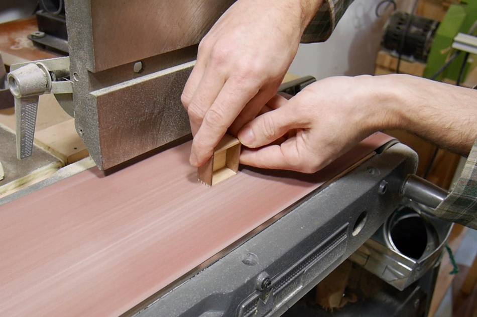 Once the glue dries, sanding everything flush on the belt sander.