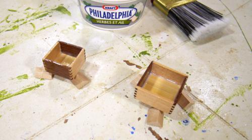 I put three coats of varnish on the box. The first coat with my regular