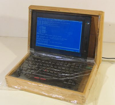 The jig is controlled by a 1996 vintage ThinkPad laptop computer, with a Pentium 133.