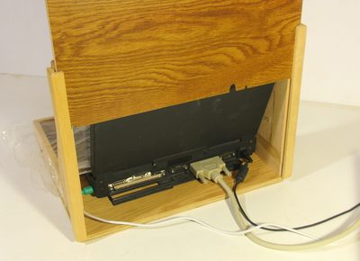 I made a wooden dust proof enclosure for the laptop computer. The screen is behind