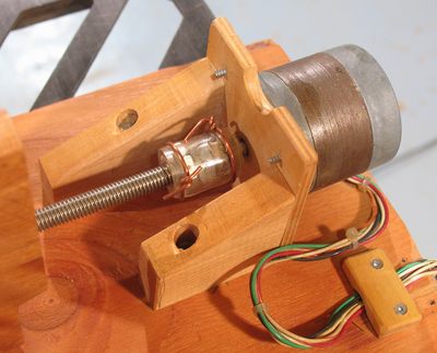 1/4" stepper motor shaft and the threaded rod is a bit of a kluge. A nut that