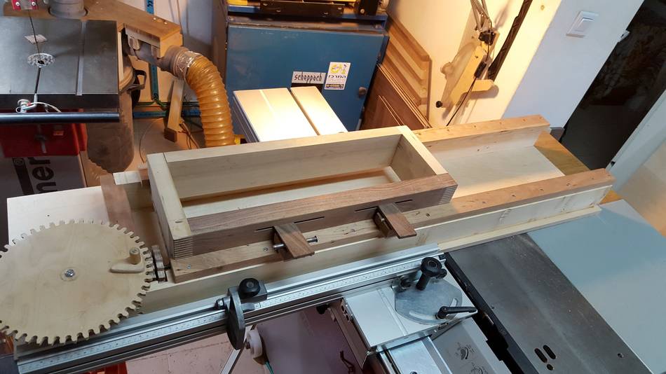 Hi Matthias, I recently finished a desk of two drawers, in which I did 60 cm of finger joints (a total of 1488 fingers in that desk). for doing that I built a different version of your box joint jig - I doubled the width to accommodate up to 60 cm width piece.