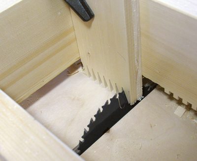 Using a regular saw blade instead of a dado blade, very fine finger joints can