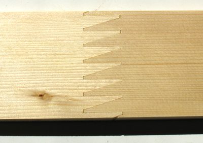Ideally, I would have a sawblade that makes a trapezoidal cut, but such a thing doesn't exist, so I experimented a little with trying other variations on the end to end finger joint.