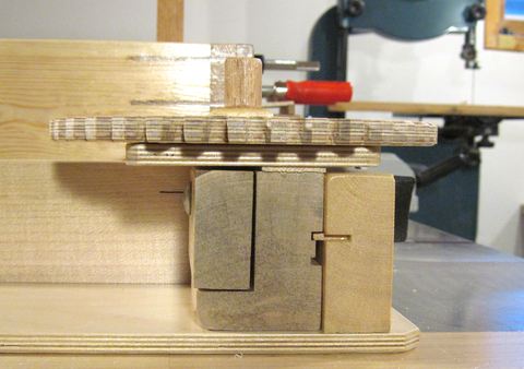 This photo shows the block placed in the upper position. Note how the little piece of wood