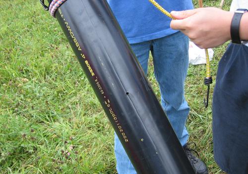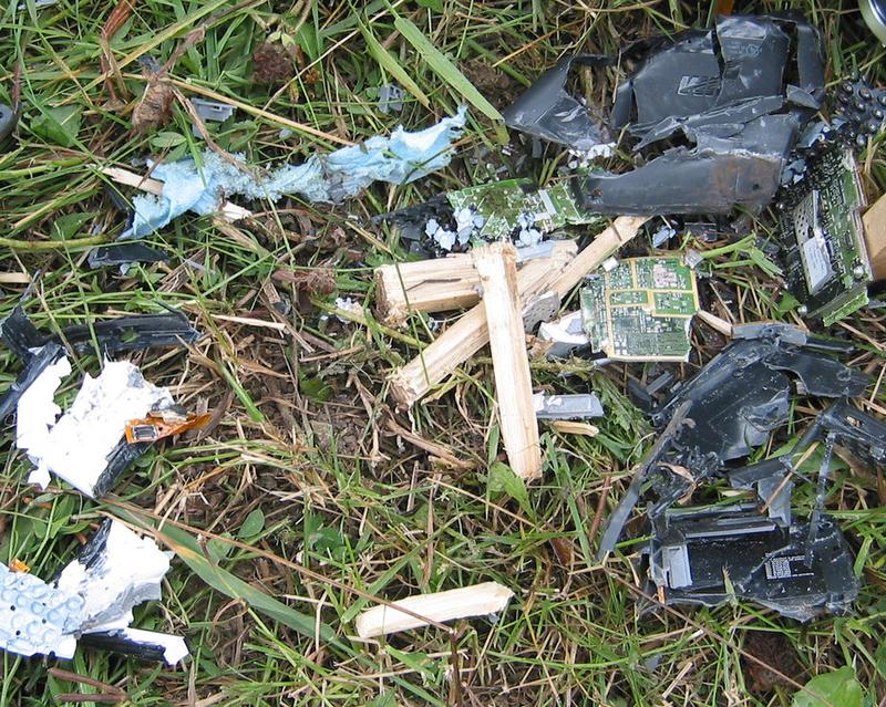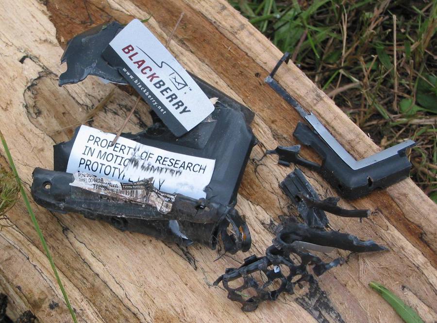 We launched some BlackBerries into the air, but we had a hard time retrieving them - all we could find were some plastic parts that broke off early. The actual devices were out in the field somewhere. But thanks to the drag chute on the plug, we were able to locate and reuse that each time.