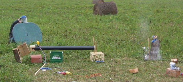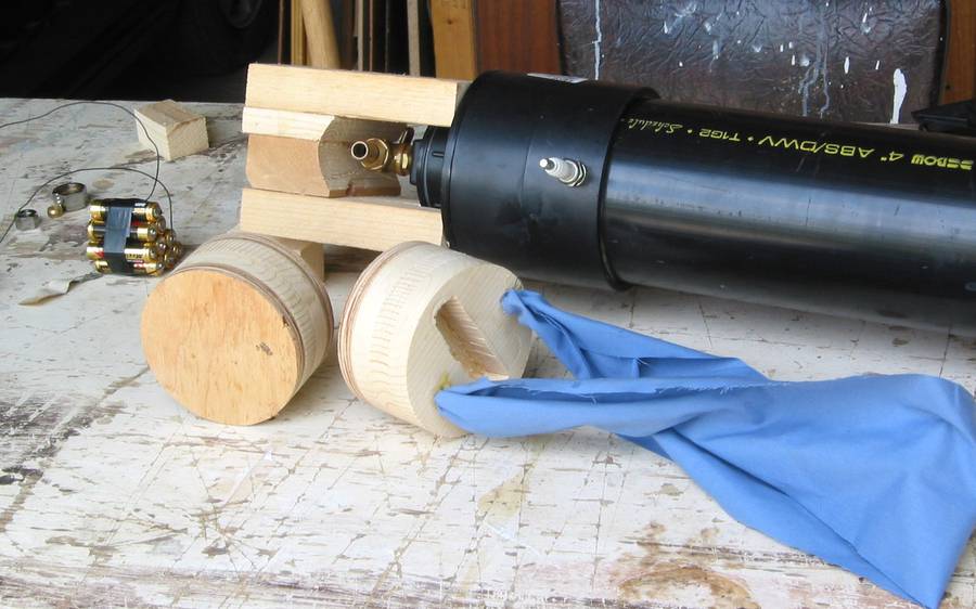 Because the prototypes I wanted to shoot were just over three inches wide, I had to go up to a larger size of ABS pipe of four inches (102 mm). But this presented a problem: No amount of wadding could fill the space between the unit and the canon's caliber.