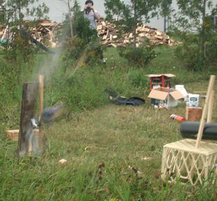 In addition to firing the cannon, Kent Nickerson also brought some model rockets which he fired off. After this wanton destruction, we were all feeling more manly and satisfied. We subsequently had a nice BBQ courtesy of Jack's wife. We also reviewed the video footage just taken. Food and entertainment, who could ask for more?