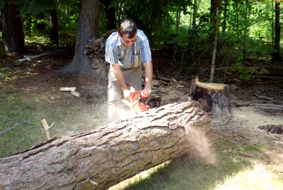 It's funny how many complicated machines for cross cutting logs can be seen