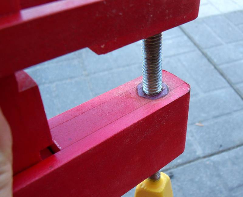 Just like my C-clamps, these clamps rely on a nut in either side of the piece of wood. But instead
