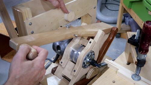 I was also using some of my new long-reach clamps, which have square star knobs on them. They have star knobs because I had these bolts with knobs already kicking around when I built them. And that shape turns out to be very easy to turn.