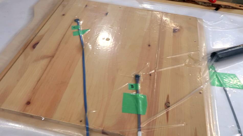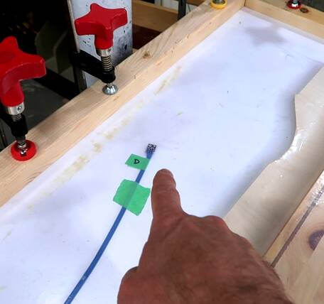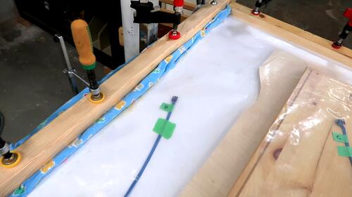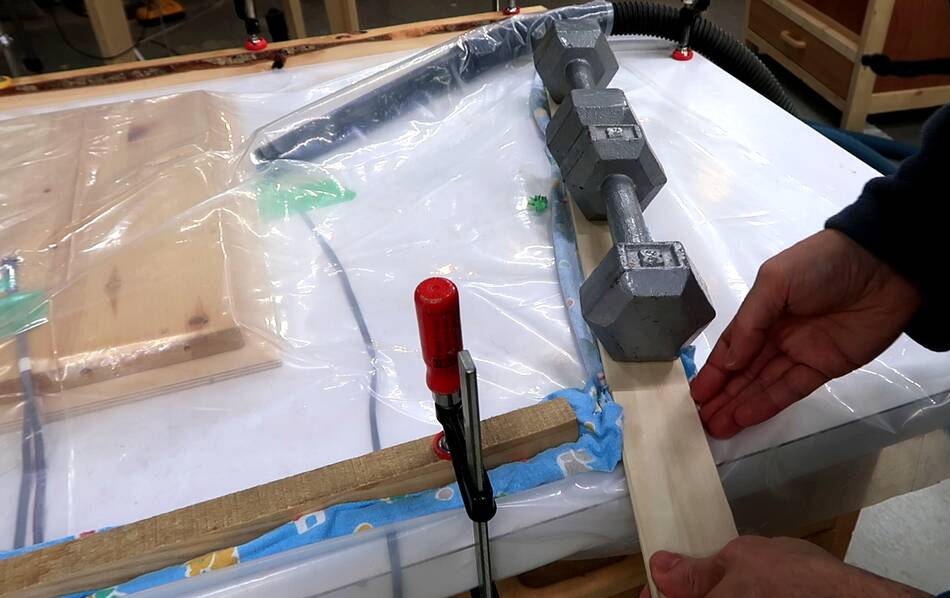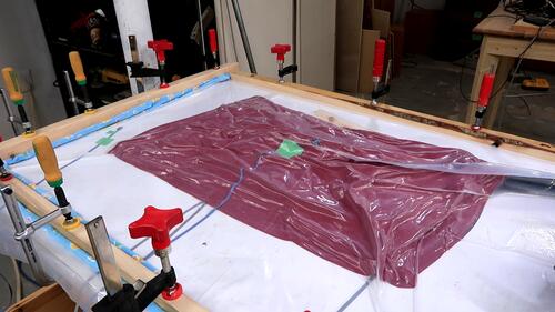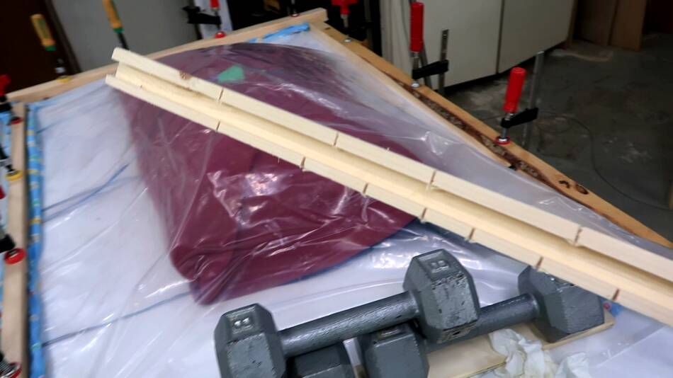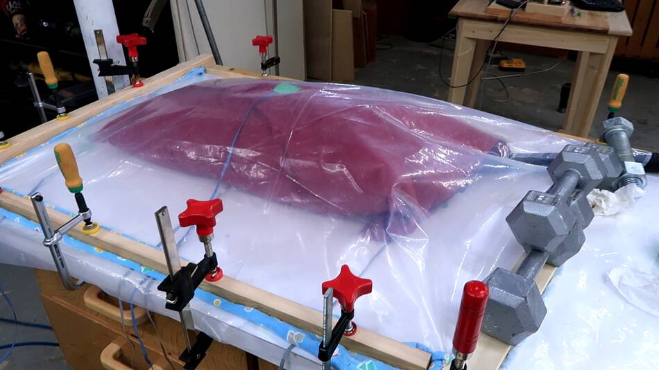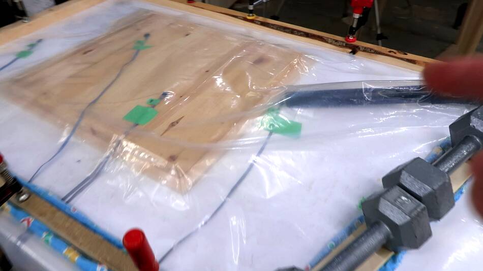 With the plastic firmly sucked down to the workbench, there wasn't much air flow there but I figured there must be some leakage Where I clamped the plastic down with a piece of wood on the very left side.