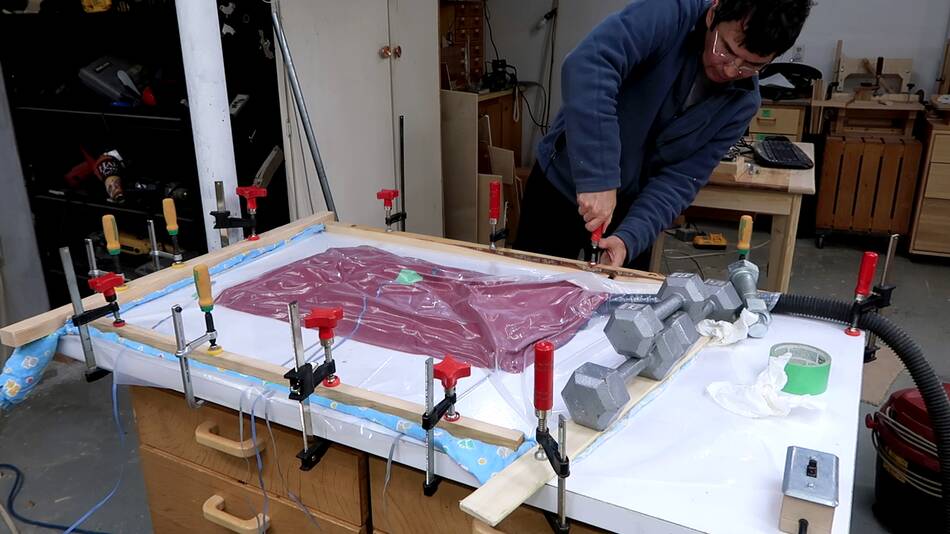 Then I realized I forgot the clamp the piece of wood on the back in the middle, so it's actually surprising I got as much vacuum as I did without having that clamped down firmly.