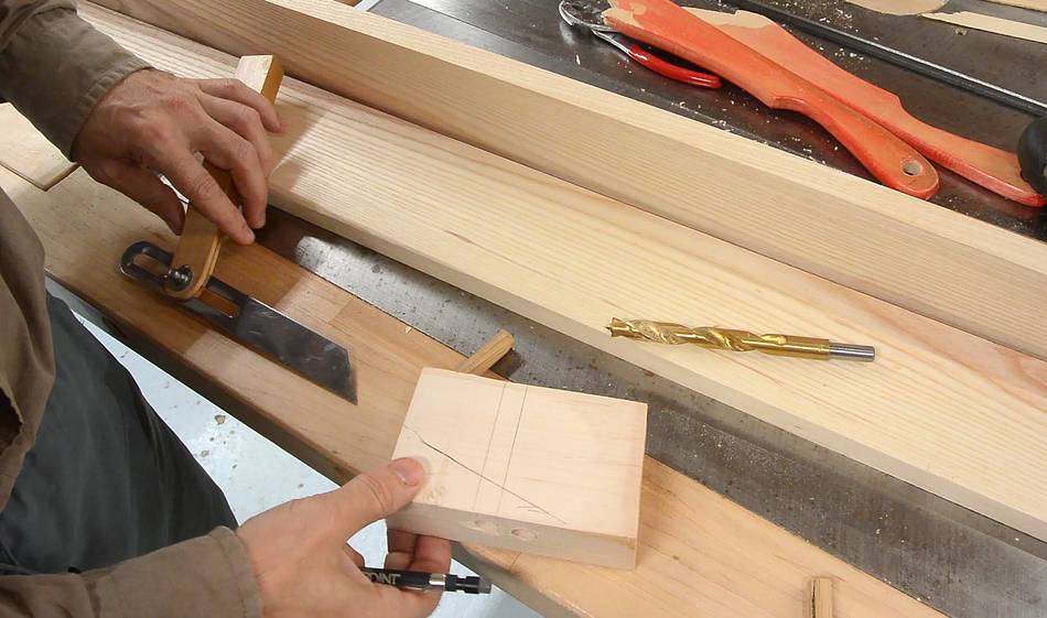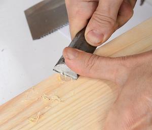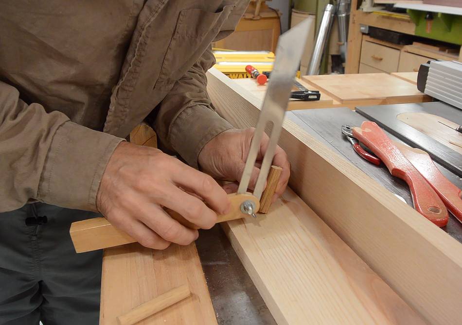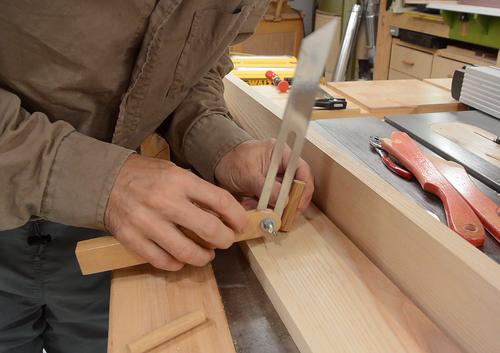 Then using a marking gauge to fix the lateral position and making a small
