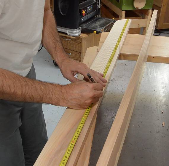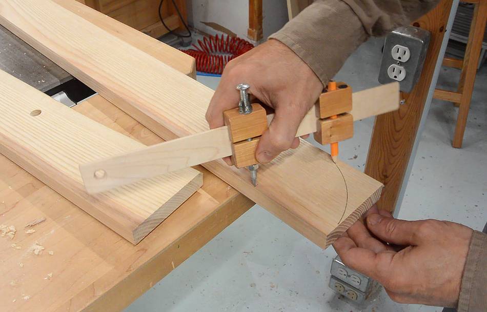 Laying out rounded ends for the shelf using my