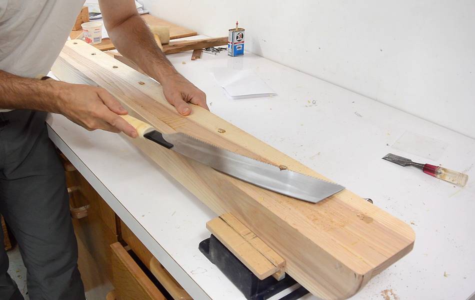 After the glue dried, I cut the dowels nearly flush using a dozuki