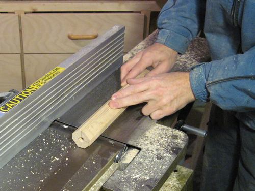 I beveled off the corners on my jointer so that I wouldn't have to remove as much material to get it round.