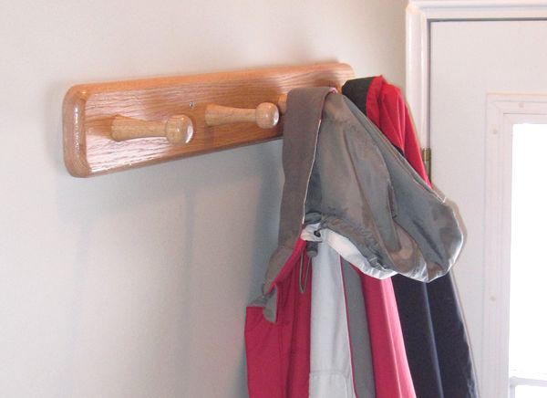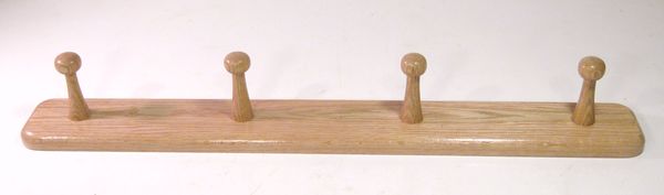 And here are the coat hooks, all done. The peg on the left is a tiny bit thinner than the other three, but it's the sort of thing people only notice if I point it out to them.