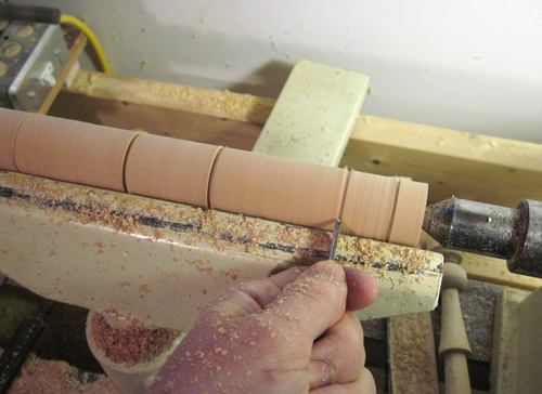 where the lines were with the parting tool. The pencil marks were still faintly visible