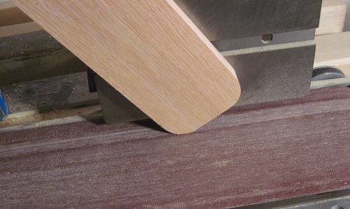 After cutting away the corners on my band saw, I smoothed the cuts on my belt