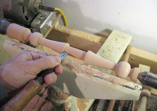 The way I made the pegs was to turn two of them on a piece of stock back to back.