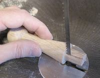 lying behind the tool rest in the photo). I used that pattern to mark my work piece.