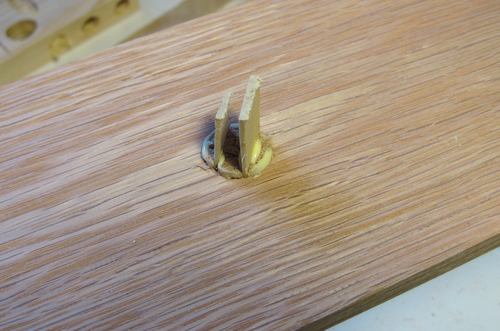 pegs, and made a wedged joint instead. The wedges expand the pin slightly and make