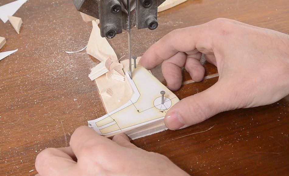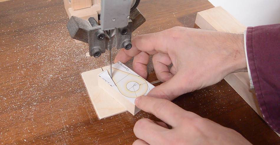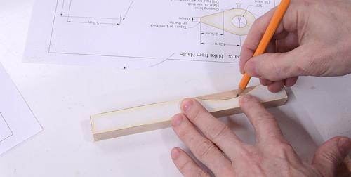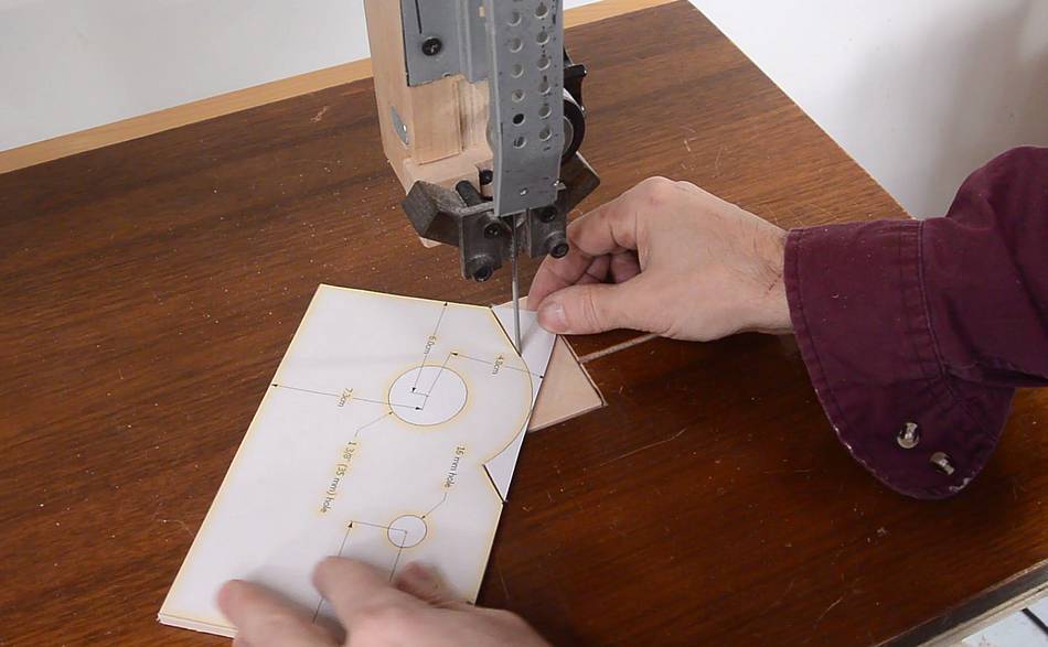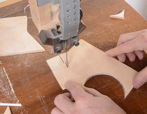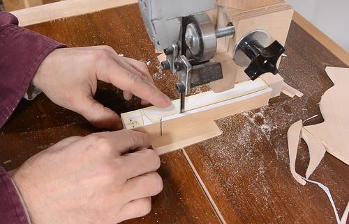 I glued the front-frace template onto a rectangular piece of 1/4" (6 mm) plywood