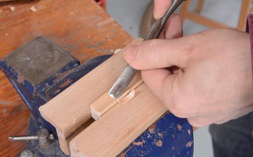 of it to match the dowel's radius. I carved that out using a gouge (a