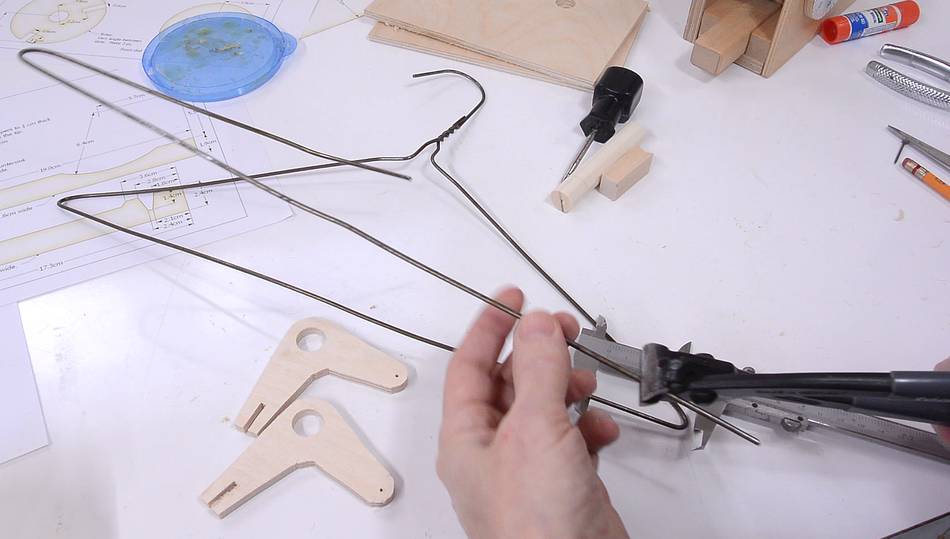 made earlier. The piece of coat hanger wire goes between the small holes,