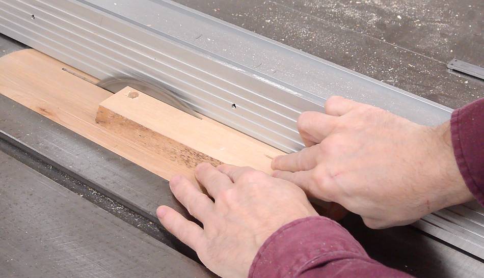 to the end, the thin piece doesn't end up flying into the saw or getting kicked
