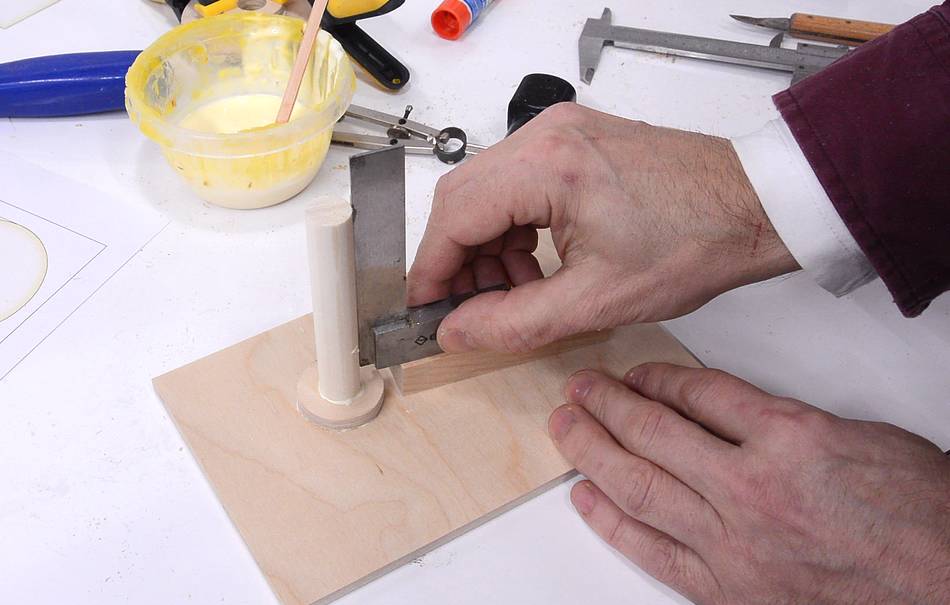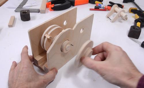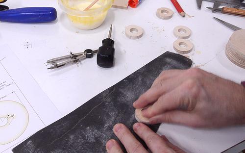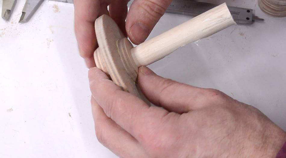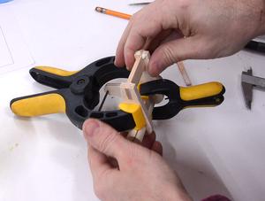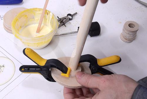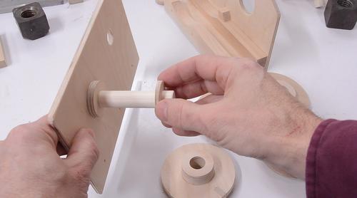 Assembling the L-bracket on a piece of dowel, with the spacer I