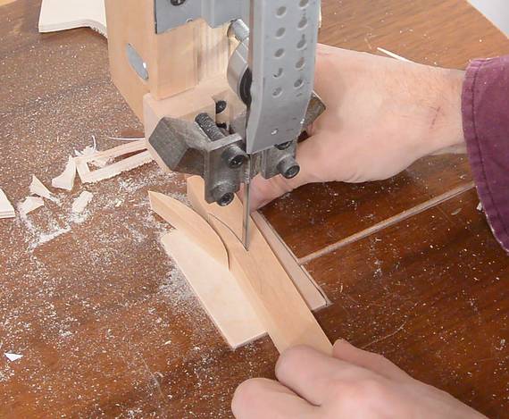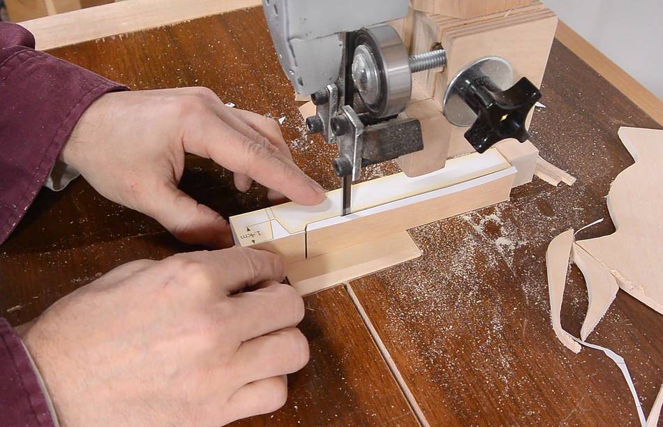 I then cut the pieces on the bandsaw. The glue stick didn't stick well enough,