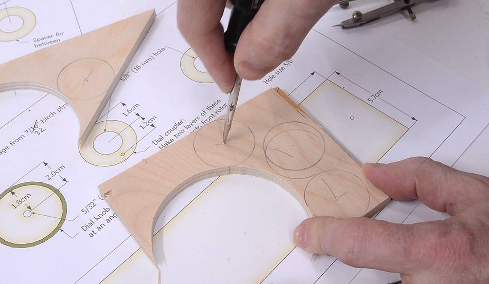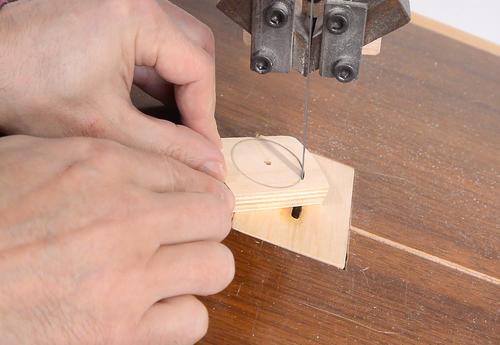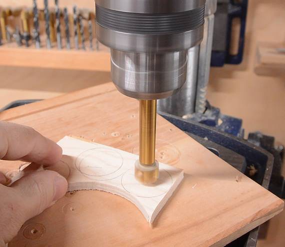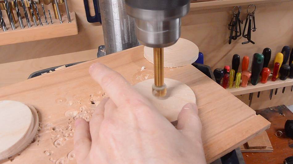 then drilled out the 5/8" (16 mm) holes before cutting the circles out.