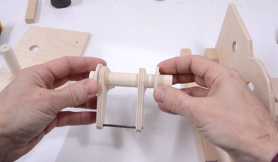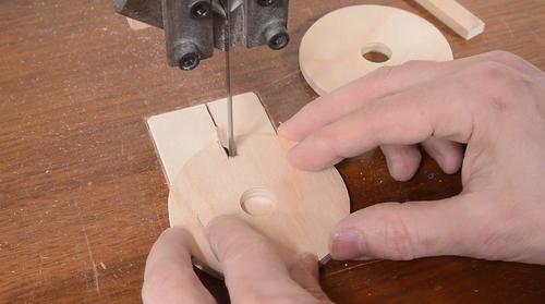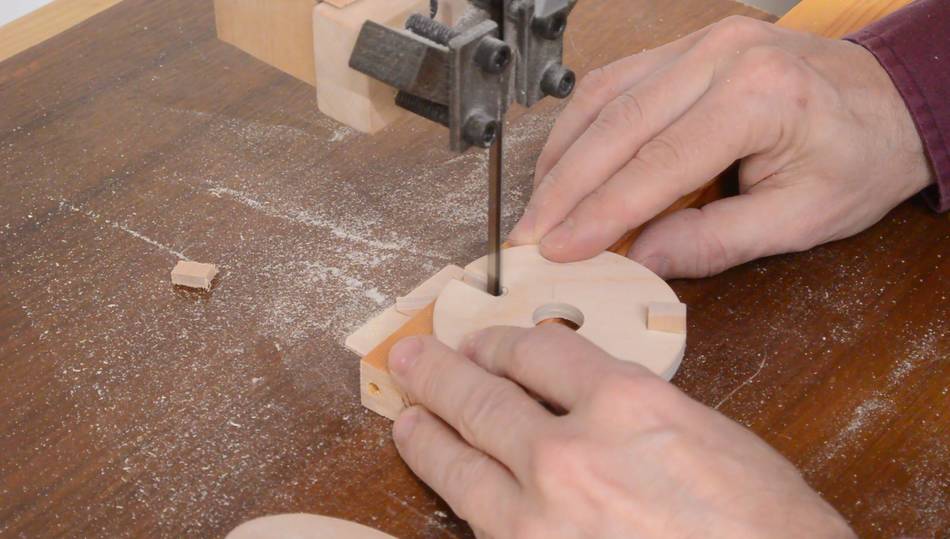 Two strips of wood that go on the bottom have an arc cut out to clear the