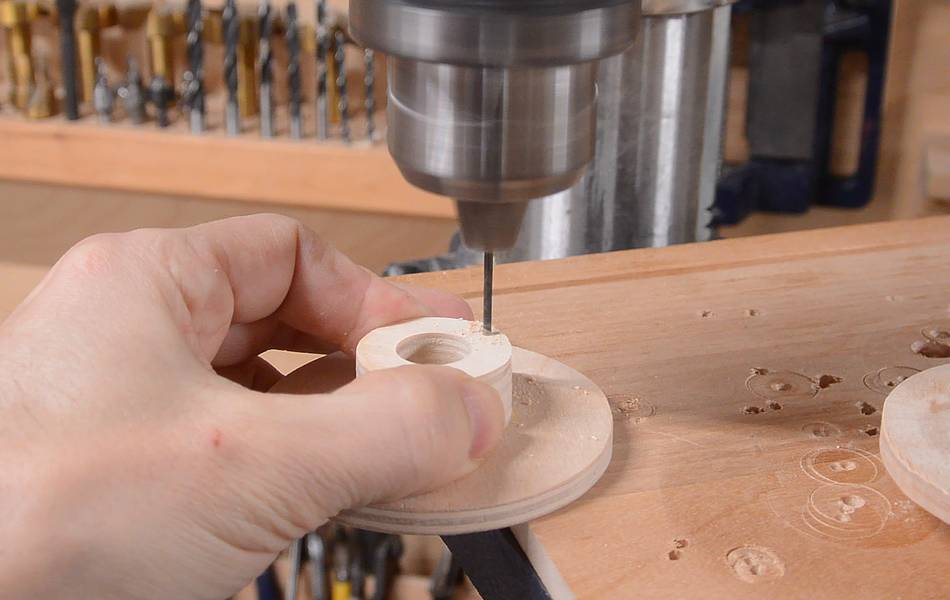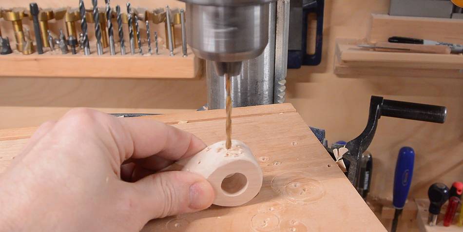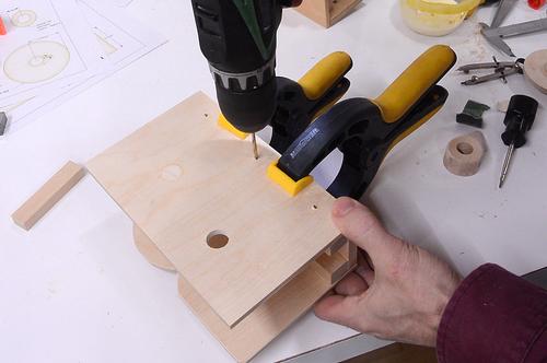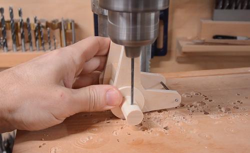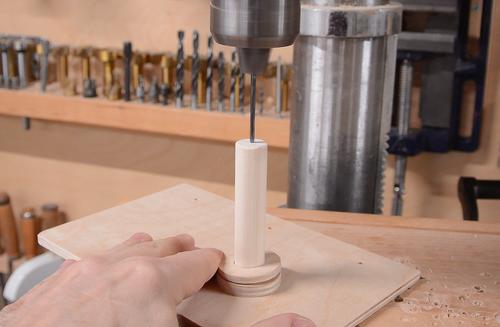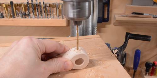 Drilling a hole for a screw to attach it to the dowel. I also added a