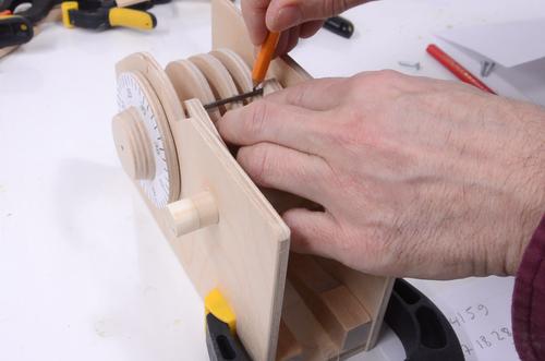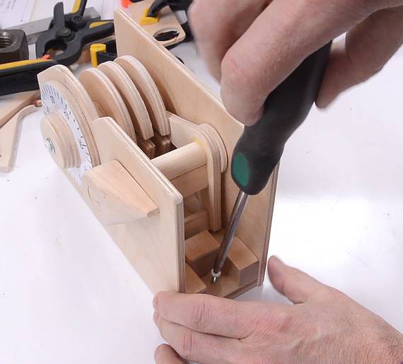 The knob for the dial has a bevel on the sides. I tilted the bandsaw by about 20 degrees