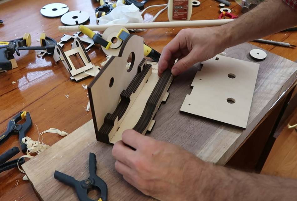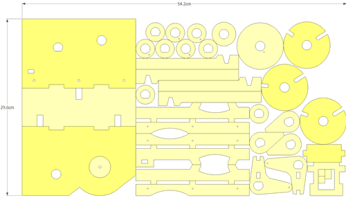 plywood. I changed the design to make the thicker pieces out of layers of 6 mm plywood.