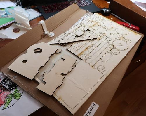 My original idea had been to try to cut the parts using the University of New Brunswick's laser cutter, which I was able to get access to sporadically. But after a few "misses" getting on to it, I sent the parts out to have them laser cut.