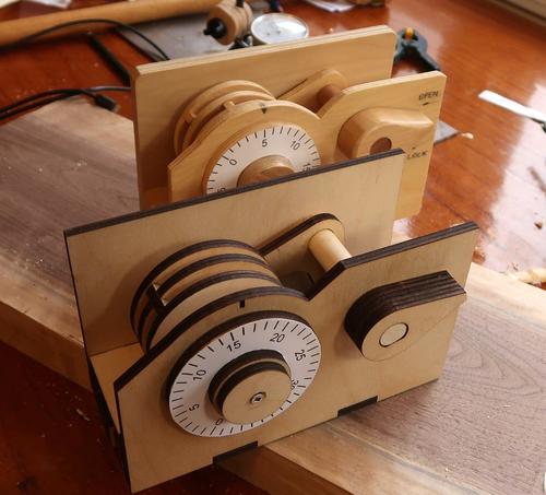 My wooden combination lock used a few pieces of solid wood that could not be cut on a laser