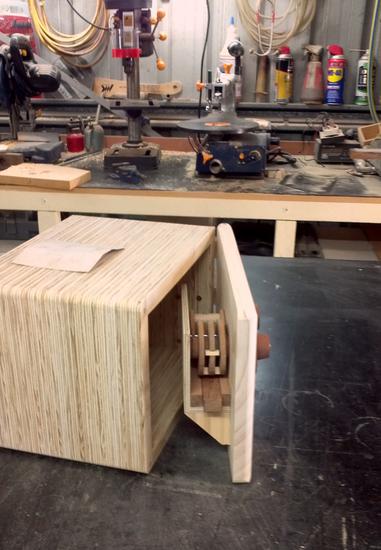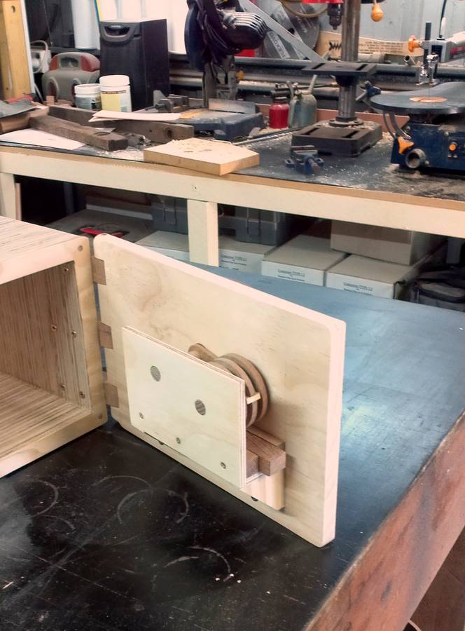 Mark Ramsay writes: Hi Matthias, Thought I'd drop a line on my new project. I've incorporated your lock into a wooden box and made a 'Safe'. I used 100+ year old Silky Oak for the lock spools, tongue, rails, lock lever, dial and hinges. The box body is laminated ply and a nice piece of pine for the door. The dowels are Tasmanian oak. Anyway, here are some pics. Cheers Mark