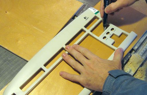 I traced the shape of the bezel from my donor keyboard onto a piece of plywood.