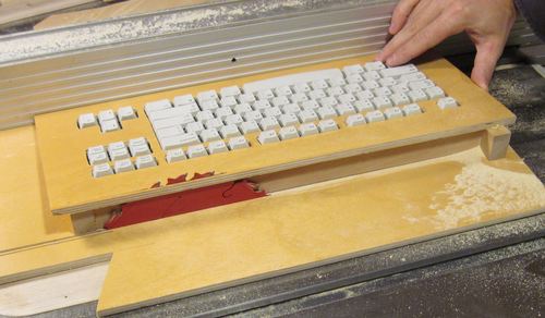 A big challenge with making a wooden case is to cut a nice bezel for the keyboard.