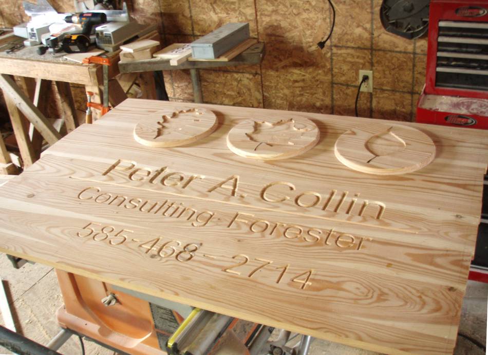 I bought your router copier plans last spring with a specific project in mind. The sign I have out front for my forestry business is getting a bit old, and I wanted a snazzier replacement with some 3D lettering. My larch lumber was finally dry enough to give it a go.